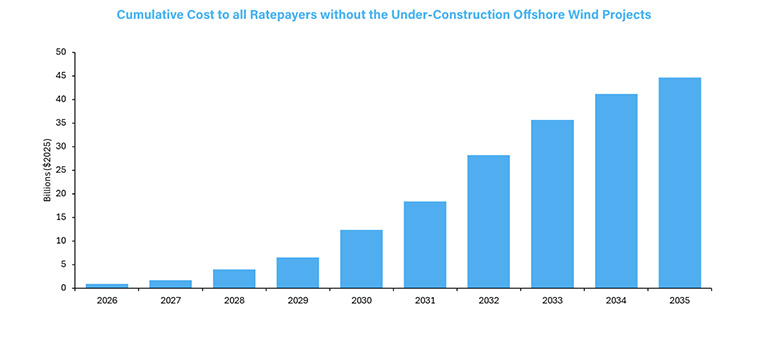 In its analysis, ACP evaluated the impact of removing the five offshore wind projects from the system. The results were then translated into expected retail electricity rates across 15 states and Washington, D.C.