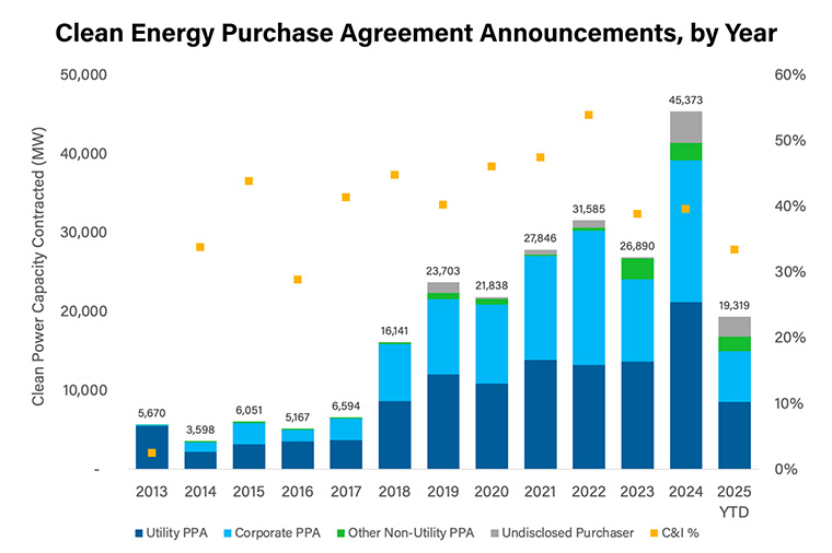 - 2025 On Pace for a Strong Year: Year to date, 30.9 GW of clean energy power generation has been connected to the grid, up 1 GW from the current top year (2024) for clean energy installation.