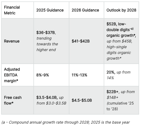 GE Vernova reaffirms its 2025 revenue and adjusted EBITDA margin* guidance, raises its 2025 free cash flow* guidance, and presents its 2026 financial guidance. The company also raises its outlook by 2028, as presented at its 2024 Investor Update.