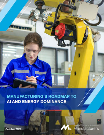 WASHINGTON, D.C. — The National Association of Manufacturers (NAM) released Manufacturing’s Roadmap to AI and Energy Dominance, a blueprint outlining the steps policymakers must take to strengthen America’s energy and artificial intelligence dominance—including comprehensive permitting reform.